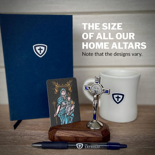 Home Altars | St. Francis Design | The Catholic Woodworker Imbuia Altar Base with 3 Prayer Cards|